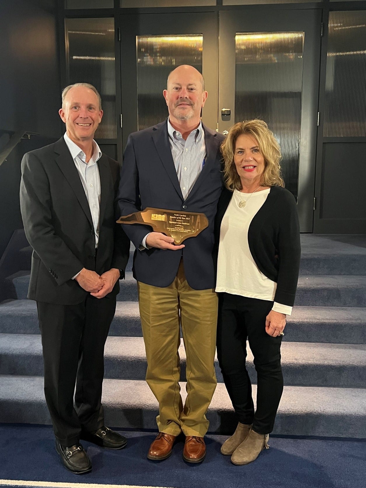 Jeff Steelman and Steelman’s Ace Hardware were named 2025 Retailer of the Year by NCRMA. Pictured from L-R are NCRMA President and General Counsel Andy Ellen, Jeff Steelman and his wife, Dawn.